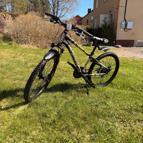 Cresent Jare 24 tums barncykel i mountainbike stuk, pojkcykel eller flickcykel med 7 växlar i mycket fint skick. Svart metallic lack med matt svarta detaljer. Cykeln har alltid förvarats inomhus och är väl omhändertagen. Handbroms med skivbroms fram och fotbroms. Ramlås med två nycklar. Aluminiumram. Nyservad. Passar barn mellan 120-150cm. Nypris Crecent Vale Torn MTB 7795kr.