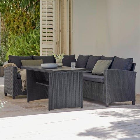 Två trädgårdsbord i serien Portland i svart. Säljs på gekås, se bilder för mått och utförande. Köptes förra säsongen för att få soffor och fåtöljer men hade andra bord sedan tidigare. Ej uppackade.