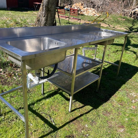 Rostfri arbetsbänk med diskho och underhylla