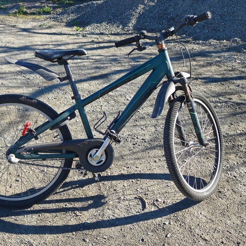 Rosa Crescent Ran barncykel med 24" hjul och korg fram. Har pakethållare bak och fotbroms.