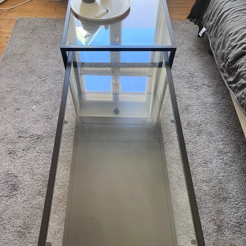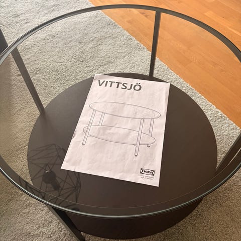 Soffbord i tvådelar. Modellen är Vittsjö från Ikea där kan ni även se exakta mått. Använt men i mycket bra skick.