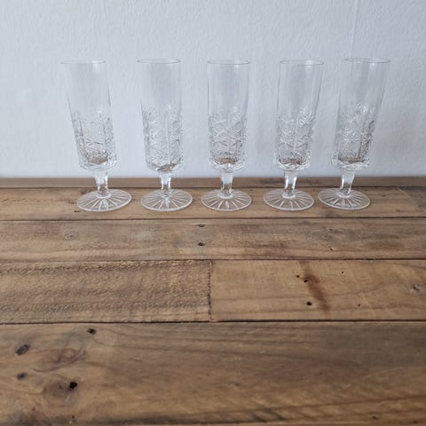 7st Fina små likörglas med blå blommönstrad dekor. Smala höga glas på fot, bra som snapsglas eller dessertglas. Aldrig använda. Men ej i kartong. Flores Caruelis