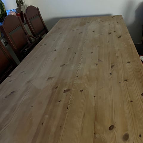 Nedmonterar för enklare frakt. Bordsskiva är i ett stycke.