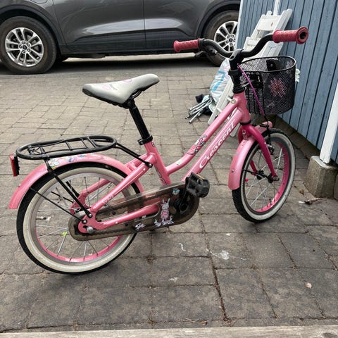 Superfin rosa barncykel från Winther i modell W150 i storlek 16".