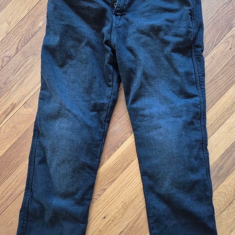 Jeansen är använda men i fint skick. Normalt slitage finns, se bilder. Perfekta för dig som vill ha skyddande mc-byxor som ser ut som vanliga jeans.