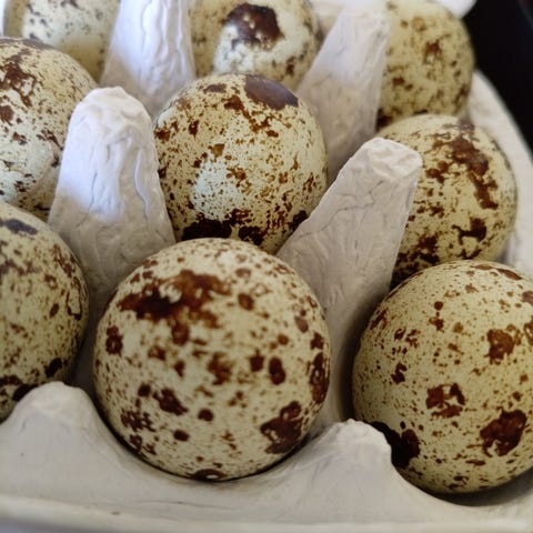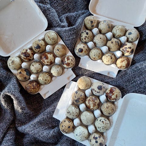Vaktelägg i kartong, fint spräckliga i olika nyanser. Passar både för dig som vill kläcka egna vaktlar eller använda äggen i matlagning.
