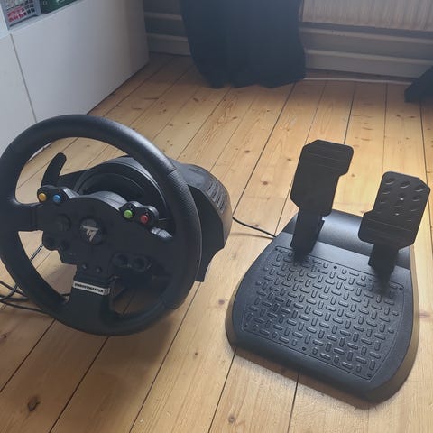 En bra nybörjar-racingratt med pedaler, den har force feedback vilket gör det olika tungt att bla svänga beroende på däckgrepp och vägunderlag.