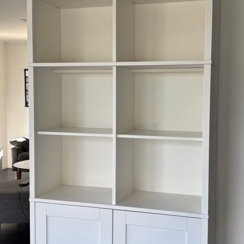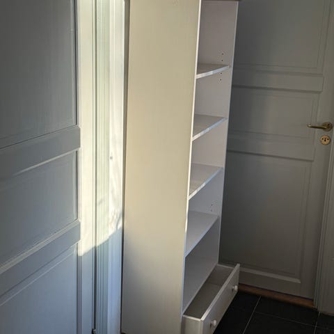 Finns även en hög smal bokhylla i samma serie för 2000kr, ett par små märken, foto kan skickas.