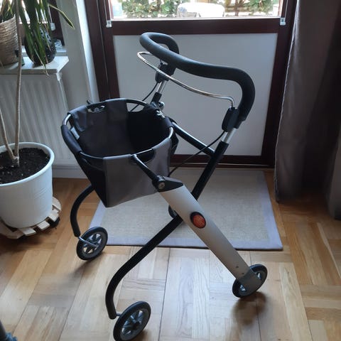 Rollatorn är hopfällbar, så den är enkel att förvara och ta med i bilen, bussen med mera.