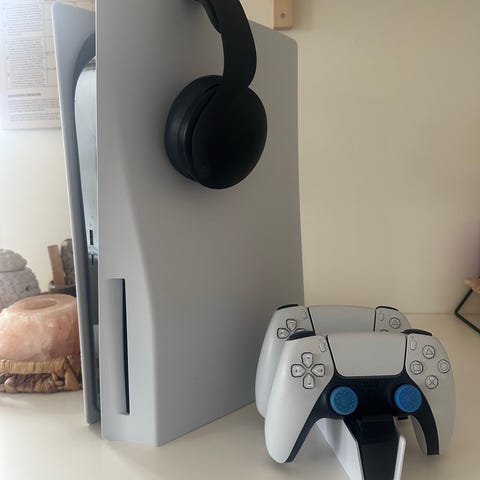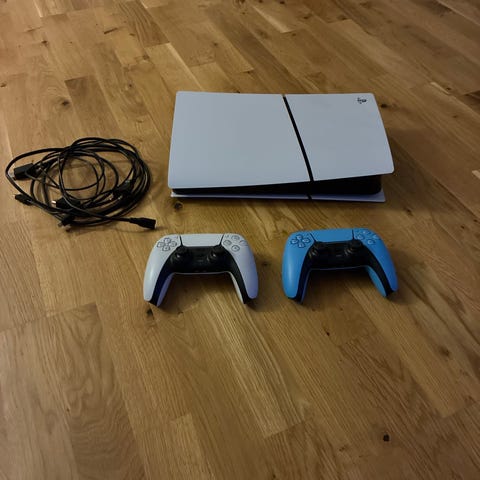 Playstation 5 i originalkartong. Knappt använt så är i gott skick, Alla original kablar ingår och en handkontroll som följde med i köpet.