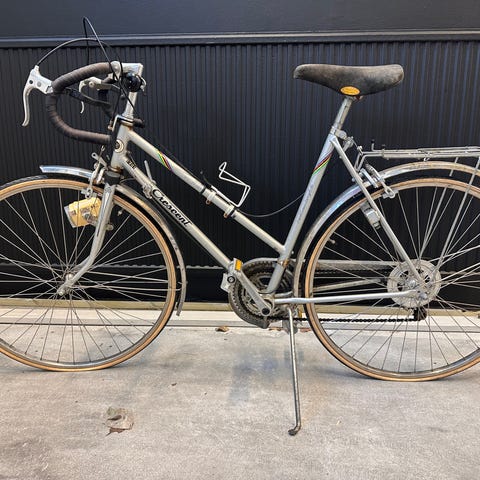 Crescent "världmästarcykeln". En sann klassiker. Här utrustade med tidstypisk styrväska. En stadscykel med 10 växlar, 28" hjul i unisexram M, utrustad med skärmar och kedjeskydd. Har pakethållare bak och handbromsar fram och bak. Ramlås med nyckel.