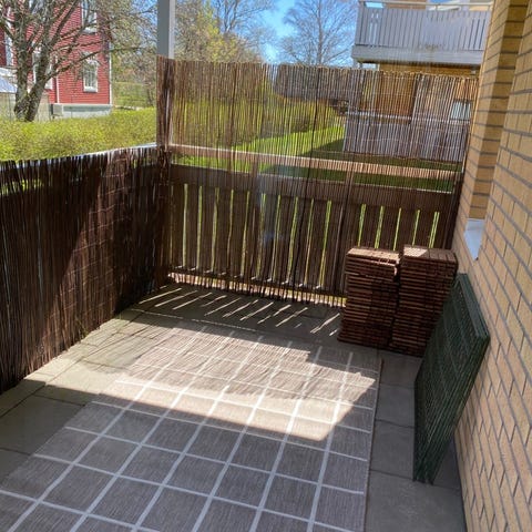 Säljer två st nya oanvända IKEA NÄMMARÖ insynsskydd i ljusbrunlaserat trä med metallfästen nertill. Säljer även oanvänd IKEA MORUM slätvävd matta i mörkgrönt, 80x250 cm, som funkar både inne och ute.