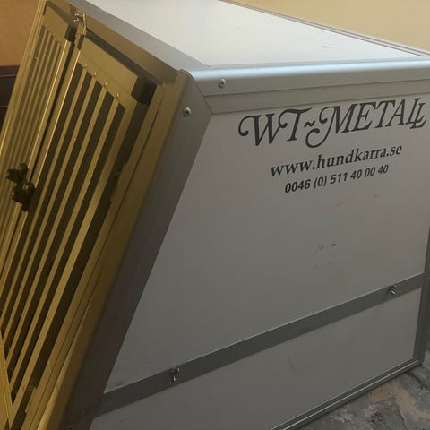 Dubbelbur från WT Metall i finfint skick. Har suttit i en Volkswagen Multivan. Löstagbar mellanvägg och evakueringslucka bak