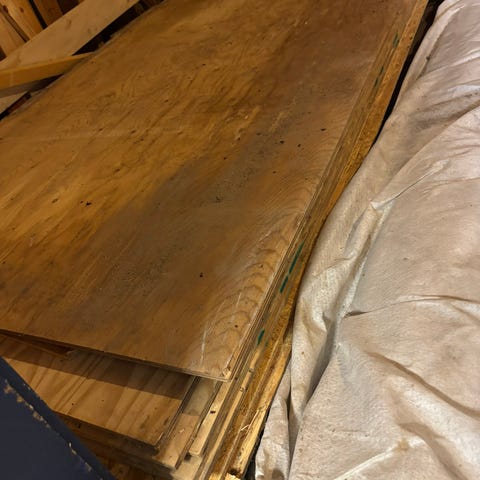 Ett parti, ca 50 kvm, spännpapp i rivna ark 0,7x1,0 m. Troligtvis från 30-talet. Minst 65 st hela och fina och ett tiotal med mindre defekter.