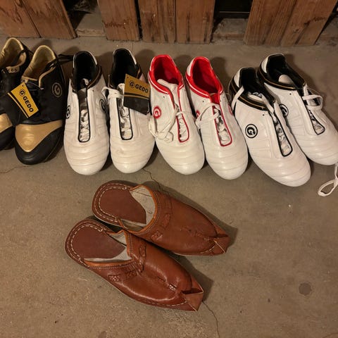Adidas fotbollsskor i stl 41/42 (UK 8) med snörning och fasta dobbar. Obs, de är lite små i storleken, så även om det står 42 i lappen så är de snarare 41.