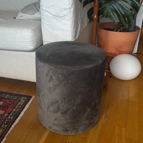 Pall i grå samet ca 45cm i diameter 38 cm hög från