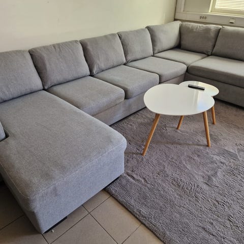 Säljer en fin soffa 3-sits med divan i beige tyg.