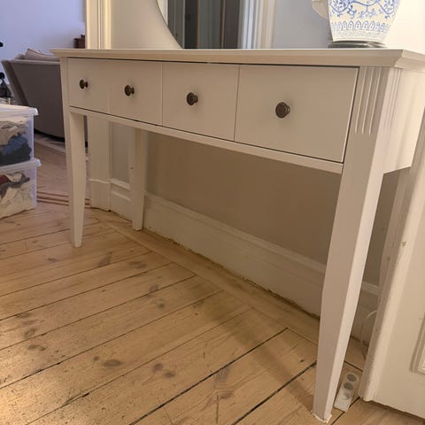 Vit hallmöbel/skrivbord med tillhörande pall och spegel. Lampan ingår om så önskas.