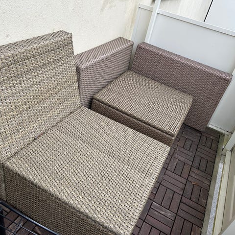 Säljer ett snyggt och bekvämt loungeset från IKEA, serien Äpplarö (utgått sortiment). Perfekt för balkong eller mindre uteplats.