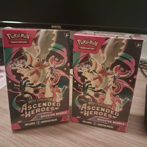 Säljer en Pokemon ascended heroes mini tin display. 10st tins med 2 ascended heroes boosterpaket i varje så 20paket totalt. OBS: en reva i plasten som syns på bild 3.