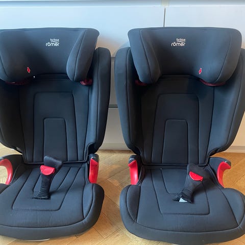 Två bilbarnstolar Britax Römer i-Size i mycket fint skick. Inköpta hösten 2022. Använda till endast ett barn i två olika bilar. Okrockade. Svarta.