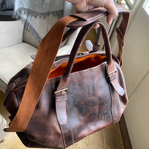 Brun weekendbag/duffel med dubbla handtag och dragkedjor upptill och på sidorna. Rymlig modell i mjukt material som funkar både som resväska och träningsväska för alla.