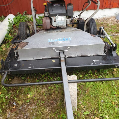 Stiga Park prestige åkgräsklippare med frontmonterat klippaggregat och bekväm förarstol. Snöblad/plogblad från Stiga följer med och är enkelt att vinkla med handtaget fram. Maskinen startar men slutar gå efter en stund. Allt annat ok. Jag har inte behov av maskinen längre.
