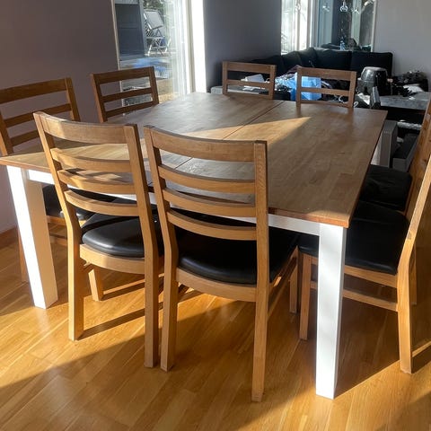 Matbord i Ek med tillhörande iläggsskiva