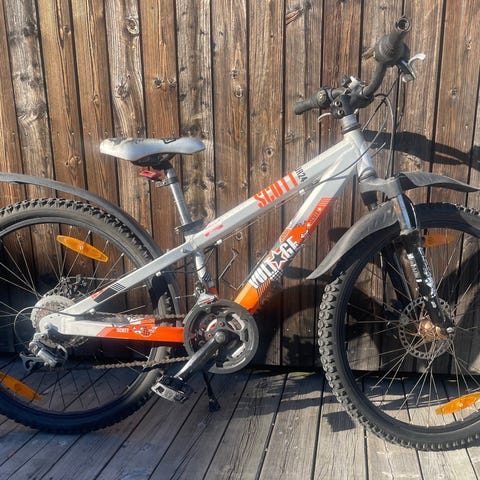 Väl använd och det finns lite märken på ramen fullt fungerande. Lätt ram i aluminium, 7 växlar och handbroms fram och bak. Hämtas i Motala, betalas med Swish.