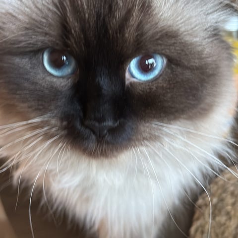 Två ragdoll inomhus katter som är födda 2023 april och är syskon. En hane vid namn Simba (mörkt ansikte) och hans syster från samma kull, en hona vid namn Nala (ljust ansikte). Båda är väldigt snälla katter och vana vid yngre barn.