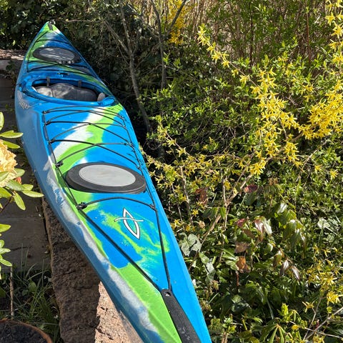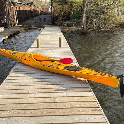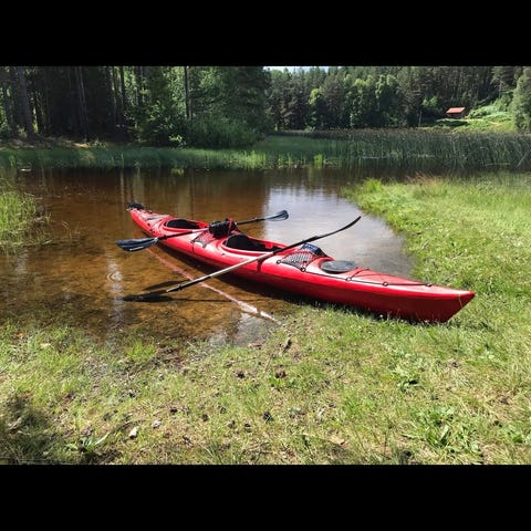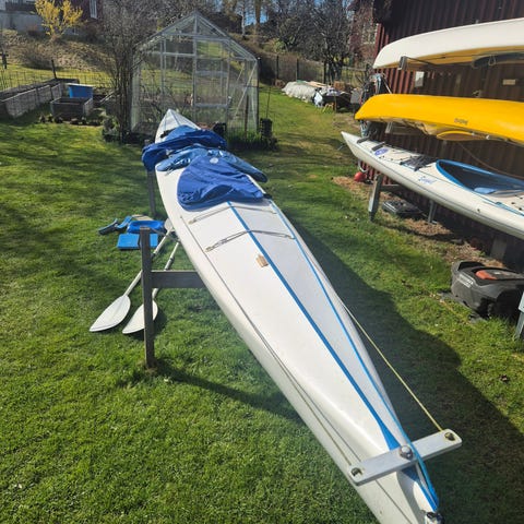 Bekväm och lättmanövrerad kajak som jag haft mycket roligt i. Gott om packutrymme för långfärder. 518 cm lång. Snart fem år sedan jag köpte den ny. Förvarad inomhus.