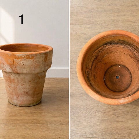 Terrakottakruka med fat. Höjd 15cm, diameter 15cm. Hämtas i Vasastan mot swish betalning.