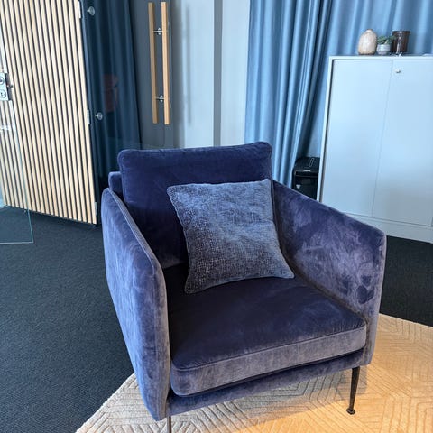 Fin blå sammetsfåtölj