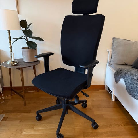 En mycket bekväm arbetsstol i gott skick, med några få skavmärken. Säljer eftersom jag har en annan arbetsstol i min hyrda lägenhet och jag arbetar från kontoret större delen av tiden.