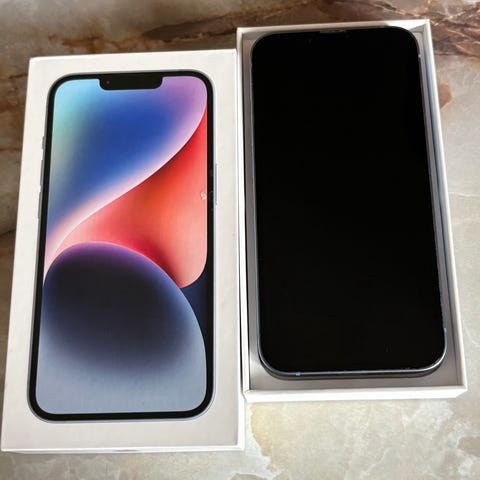 Säljer en Apple iPhone 14 med 128 GB lagring i färgen midnight. Skärmen har skav från plånbok/korthållare men inga sprickor. Syns mer eller mindre bara i släckt läge, finns lite skav/märken runt kanterna men inget som påverkar funktionen. I övrigt i gott skick/ normalt bruksslitage.