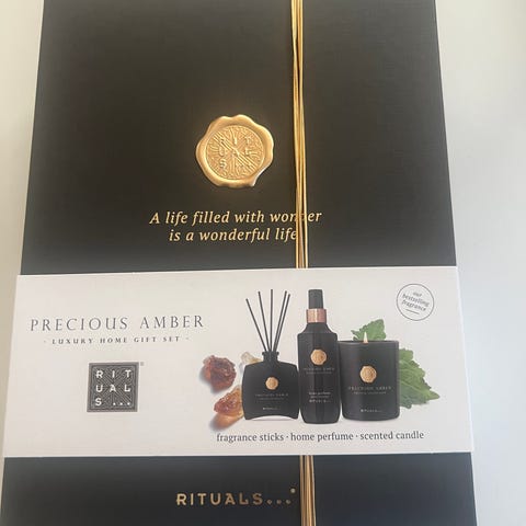 Säljer helt nytt gåvoset, röd, medium, Ayurveda. Body Scrub. Shower foam. Body cream. Aroma candle. I butik 419kr. Säljs för 280kr.