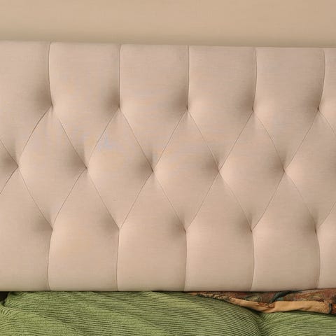 Stoppad sänggavel i beige lin från Jotex, ordinarie pris 3 899 kr.