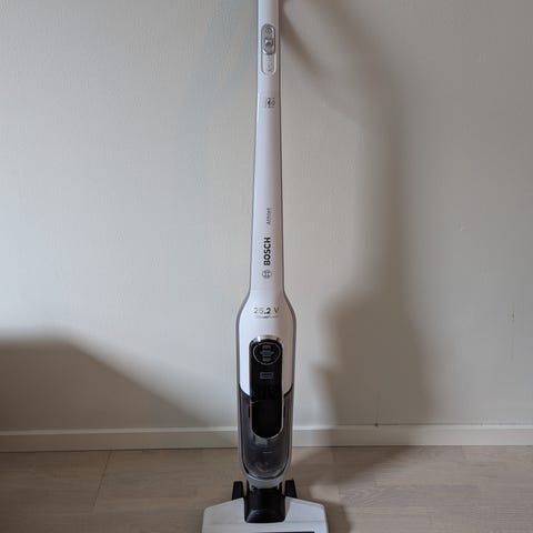 Bosch GL-30 dammsugare i blått med steglös effektreglering på ovansidan. Har teleskoprör, hjul undertill och klassisk golvmunstycke.