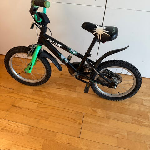 Barncykel som är perfekt för små barn och fungerar jätte bra. Däcken har ingen luft i och behöver pumpas vilket man själv får göra efter köpet, men annars så är cykeln i bra skick