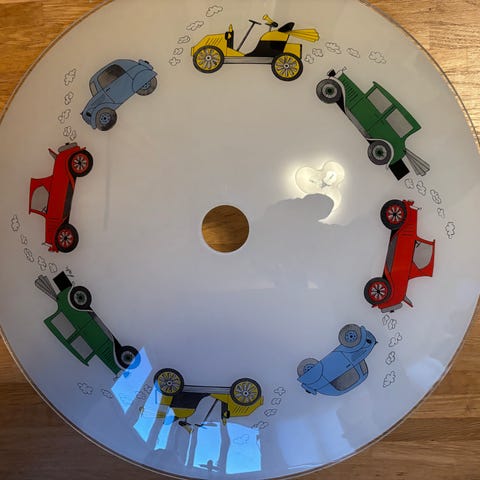 Taklampa med takfönster säljes pga av flytt. Motivet är ungdomar på skateboards.