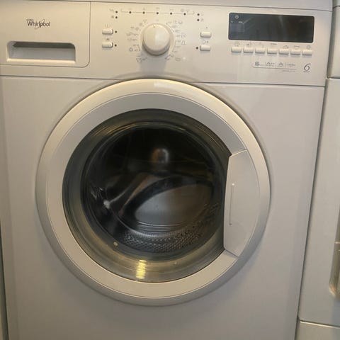 Tvättmaskin Ariston. Den går igång men tar inte in vatten som den skall i alla fall hos oss. Vi har använt den bara ett fåtal gånger. Har stått i lägenheten i cirka 10 år. Vi bor på bottenvåningen och det är en halvtrappa upp till vår lägenhet. Instruktionsbok finns om man vill ha. Bärhjälp finns av en person i hushållet på plats.