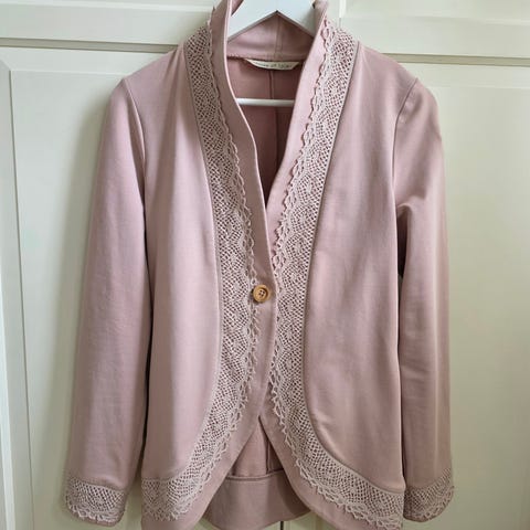 Stl 42= Längd 68 cm Rakt över bröstet 47 cm, Rakt över midjan 46 cm. Över ryggen enl 2 bilder 36 cm och 44 cm. Se bilder för mer info och mät för jag sydde in kavajen lite i ryggen. Men den blev aldrig använd ändå så nu säljer jag den