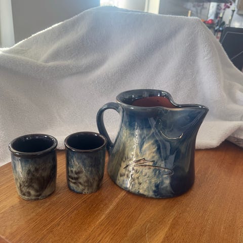 Den råa, organiska kanten möter en mjuk glasyr i bruna och naturfärgade toner – en riktig blickfångare.