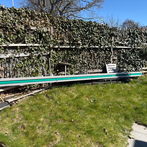 Markisvev 140 cm. Fullt funktionsduglig men något rostig krok. Handtagen är hela men har synligt slitage.