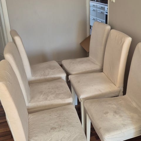 . 6 st matstolar i fint skick – med avtagbara överdrag (Mio-stil)