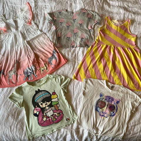 Klädpaket från H&M för flicka i stl 134/140, med flera superfina plagg som är i nyskick. Bland annat klänningar, toppar och mjuka stretchjeans. Även en t-shirt från ett designsamarbete med fin text.🥹Väldigt prisvärt paket, så först till kvarn!✨