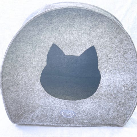 Hund/katthus i trä, grått och vitt. Två våningar som blir jättemysigt med en fäll för djuret. Ser fin och fräsch ut, inga skador.