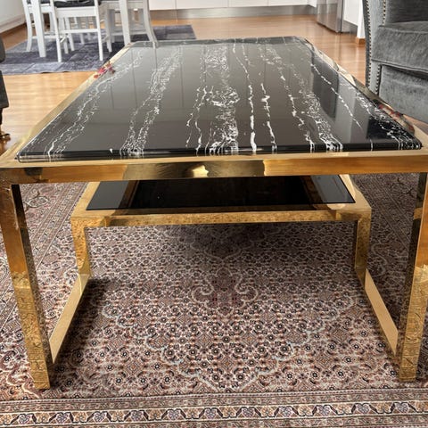 Soffbord i sten och trä, i nytt skick.
