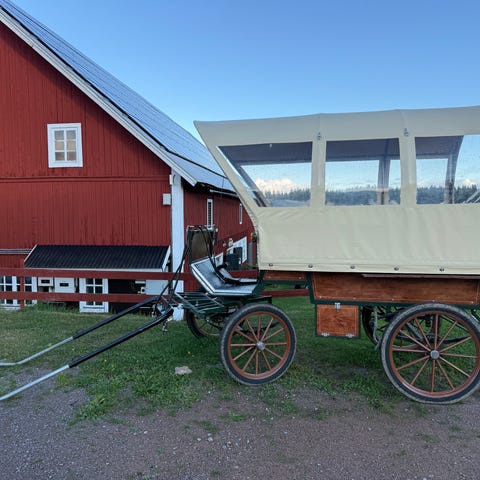 Säljer nu min wagonette då jag köpt en ny vagn. Man får plats 6pers i den men fler om de är barn som åker med. Sitter nya däck runt om på vagnen. Blivit dragen av en nordsvensk bruks men passar från D-ponny upp till storhäst.