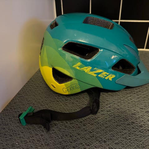 Vit cykelhjälm från Lazer i stl S (52–56 cm). Har justerbart spänne bak och flera ventilationsöppningar. Använd endast en gång som ny.